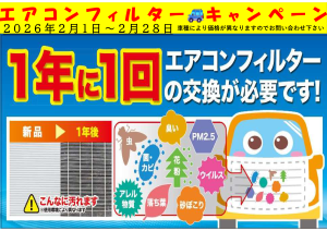 このたび、2026年2月1日〜2月28日の期間限定で、エアコンフィルター交換キャンペーンを実施しております!
